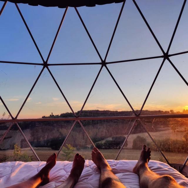 Authentische Lodges in Form eines umgekehrten Schiffsrumpfes, auf halbem Weg zwischen Chalet und Hütte. Hier können Sie sich in einer ruhigen Umgebung im Süden der Ardèche erholen. - Im Departement Tarn et Garonne an den Hängen des Quercy verfügt die Domaine de Massoulac über 3 Dômes für 2 bis 8 Personen.
